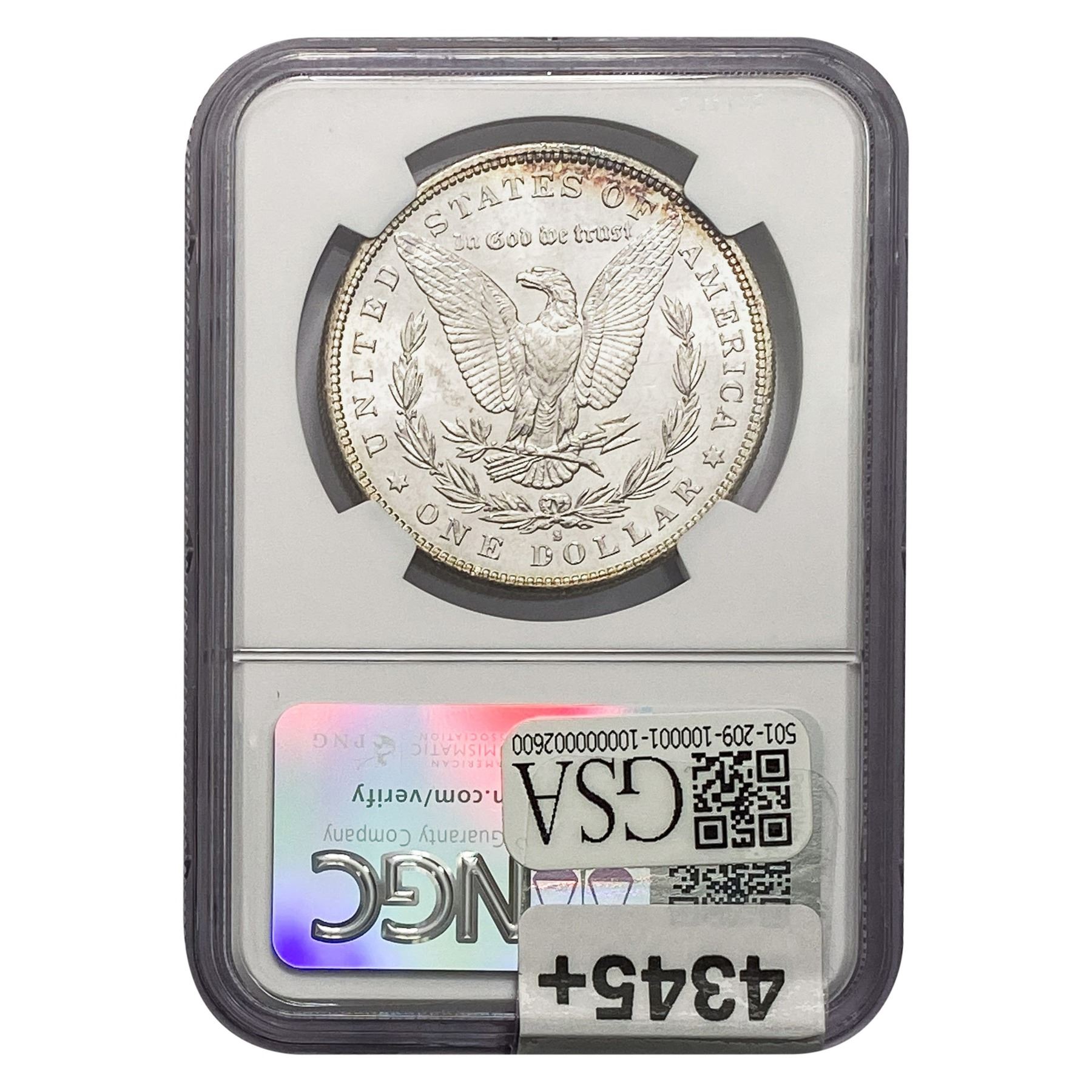 e. Coins sold referencing a third-party grading service are sold “AS IS” without any express or implied warranty, except for a guarantee by GSA that they are genuine. Removal or alteration of the holder, voids all of Bidder’s claims concerning that Product. Certain warranties may be available from the grading services and Bidders are referred to them for further details: Numismatic Guaranty Corporation (NGC), PO Box 4776, Sarasota, FL 34230, www.ngccoin.com/services/writtenguarantee.asp; Professional Coin Grading Services (PCGS), PO Box 9458, Newport Beach, CA 92658, www.pcgs.com/guarantee.html; ANACS, 6555 S. Kenton St., Ste. 303, Englewood, CO 80111; and Independent Coin Grading Co. (ICG), 7901 East Bellview, Ave., Suite 50, Englewood, CO 80111.