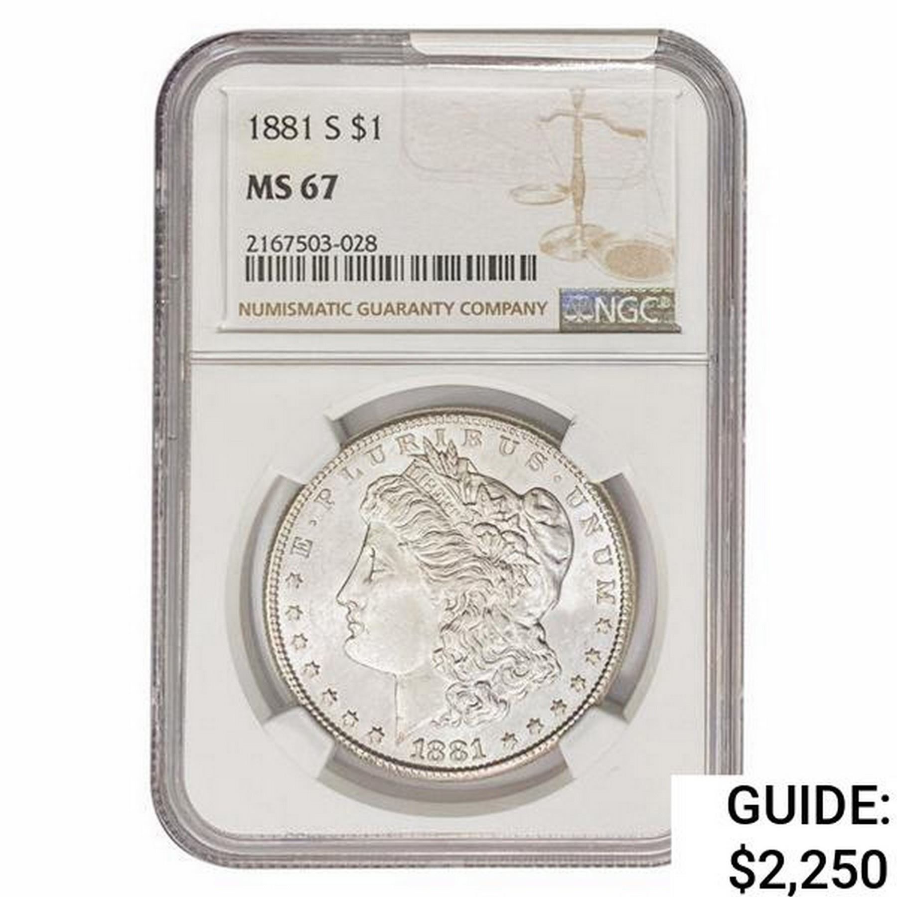 1881-S Morgan Silver Dollar NGC MS67