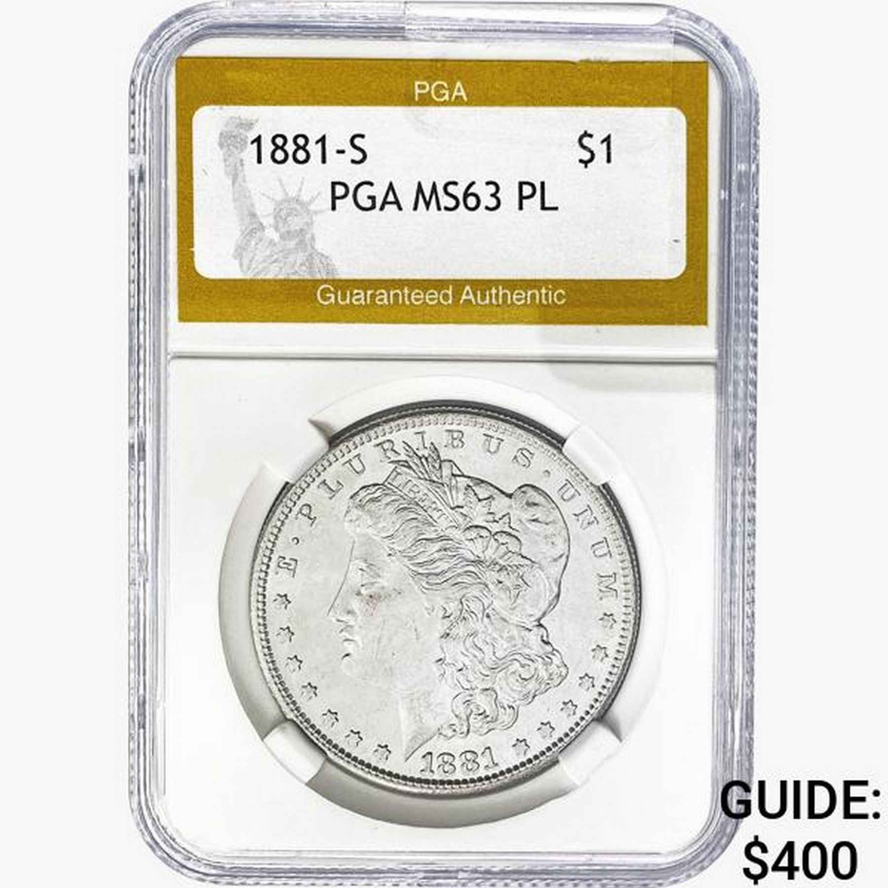 1881-S Morgan Silver Dollar PGA MS63 PL