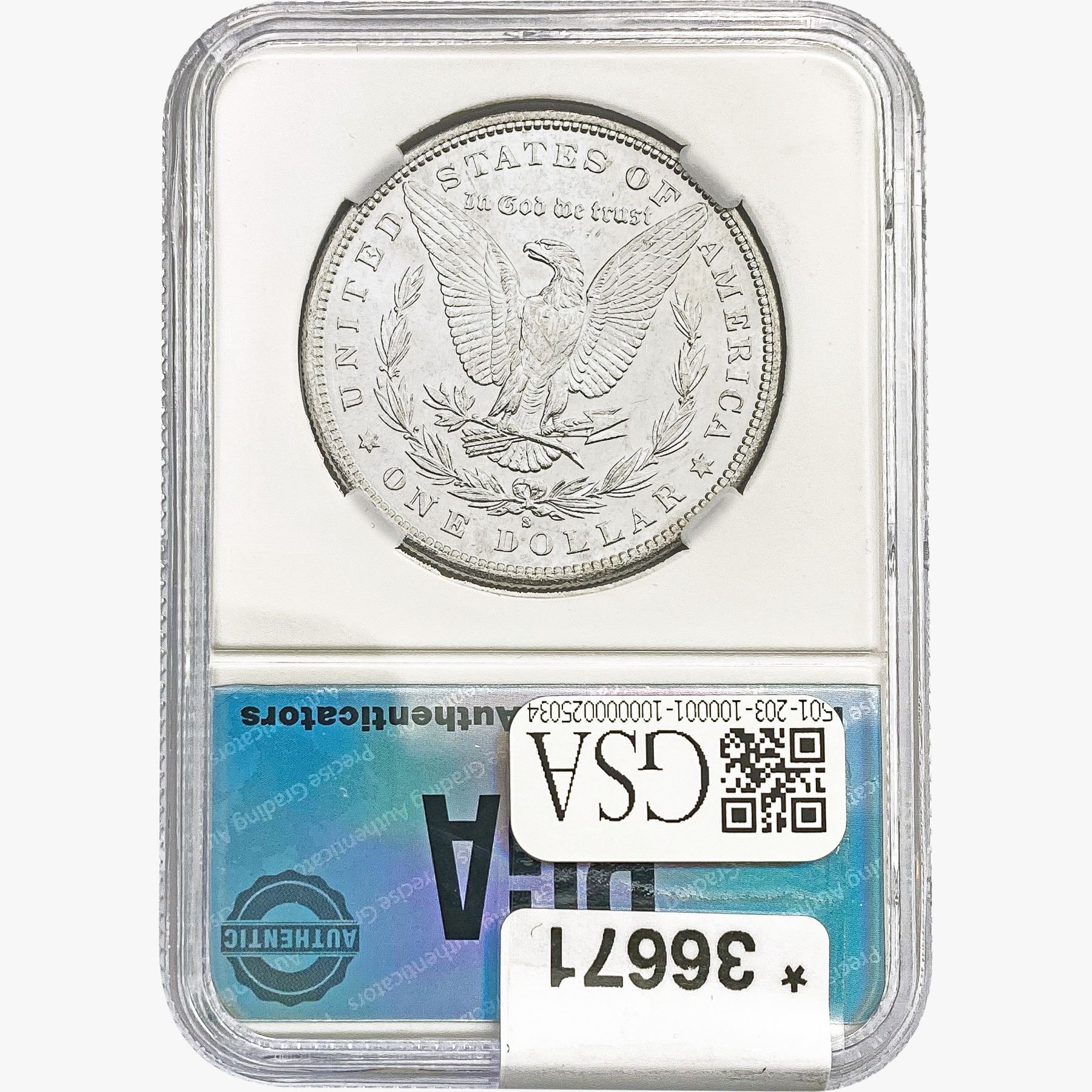 COINS AND CURRENCY LISTED IN GSA’S CATALOG AS GRADED AND ENCAPSULATED BY PCGS, NGC, ANACS, ICG, PCGS CURRENCY, PMG, PCGS BANKNOTE GRADING, CMC OR ANY OTHER THIRD-PARTY GRADING SERVICE ARE LIKEWISE SOLD “AS-IS” EXCEPT AS EXPRESSLY SET FORTH HEREIN. ALL THIRD-PARTY GRADING SERVICE GUARANTEES, INCLUDING AUTHENTICITY, ARE THE SOLE RESPONSIBILITY OF THE THIRD-PARTY GRADING SERVICE AND NOT WARRANTIES OR GUARANTEES OF GSA. BIDDERS SHOULD CONTACT THESE THIRD-PARTY GRADING SERVICES DIRECTLY WITH RESPECT TO ANY CLAIMS OR QUESTIONS THEY MAY HAVE CONCERNING THEIR GUARANTEES AND WARRANTIES. BIDDERS ACKNOWLEDGE AND AGREE THAT AUCTIONEER IS NOT BOUND BY OR LIABLE FOR ANY OPINION OR CERTIFICATION BY ANY THIRD-PARTY GRADING SERVICE. REMOVAL OF A PRODUCT FROM ITS PROTECTIVE CASING OR HOLDER OR ALTERATION OF ANY COIN HOLDER WAIVES ALL RIGHTS CONCERNING THE PRODUCT CONTAINED THEREIN.
