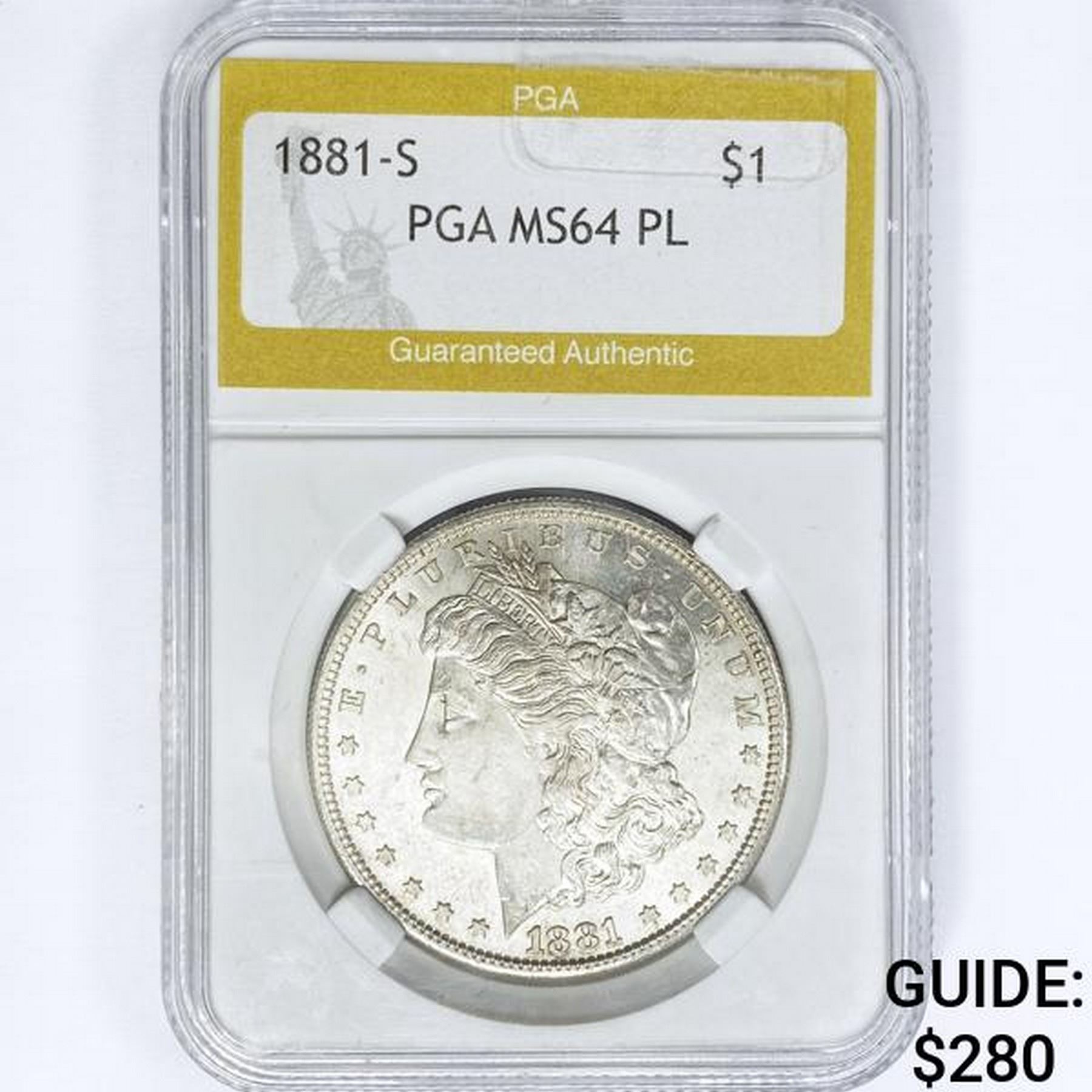 1881-S Morgan Silver Dollar PGA MS64 PL