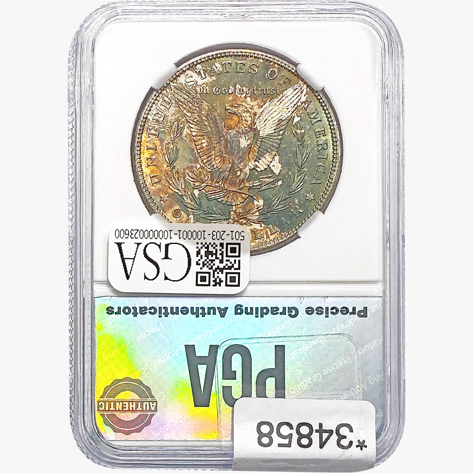 COINS AND CURRENCY LISTED IN GSA’S CATALOG AS GRADED AND ENCAPSULATED BY PCGS, NGC, ANACS, ICG, PCGS CURRENCY, PMG, PCGS BANKNOTE GRADING, CMC OR ANY OTHER THIRD-PARTY GRADING SERVICE ARE LIKEWISE SOLD “AS-IS” EXCEPT AS EXPRESSLY SET FORTH HEREIN. ALL THIRD-PARTY GRADING SERVICE GUARANTEES, INCLUDING AUTHENTICITY, ARE THE SOLE RESPONSIBILITY OF THE THIRD-PARTY GRADING SERVICE AND NOT WARRANTIES OR GUARANTEES OF GSA. BIDDERS SHOULD CONTACT THESE THIRD-PARTY GRADING SERVICES DIRECTLY WITH RESPECT TO ANY CLAIMS OR QUESTIONS THEY MAY HAVE CONCERNING THEIR GUARANTEES AND WARRANTIES. BIDDERS ACKNOWLEDGE AND AGREE THAT AUCTIONEER IS NOT BOUND BY OR LIABLE FOR ANY OPINION OR CERTIFICATION BY ANY THIRD-PARTY GRADING SERVICE. REMOVAL OF A PRODUCT FROM ITS PROTECTIVE CASING OR HOLDER OR ALTERATION OF ANY COIN HOLDER WAIVES ALL RIGHTS CONCERNING THE PRODUCT CONTAINED THEREIN.