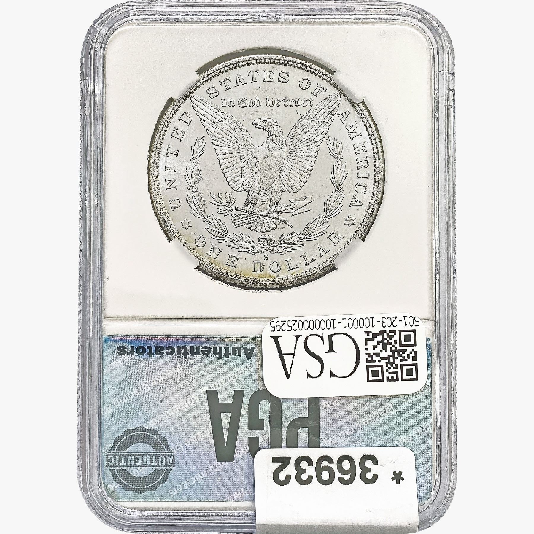 COINS AND CURRENCY LISTED IN GSA’S CATALOG AS GRADED AND ENCAPSULATED BY PCGS, NGC, ANACS, ICG, PCGS CURRENCY, PMG, PCGS BANKNOTE GRADING, CMC OR ANY OTHER THIRD-PARTY GRADING SERVICE ARE LIKEWISE SOLD “AS-IS” EXCEPT AS EXPRESSLY SET FORTH HEREIN. ALL THIRD-PARTY GRADING SERVICE GUARANTEES, INCLUDING AUTHENTICITY, ARE THE SOLE RESPONSIBILITY OF THE THIRD-PARTY GRADING SERVICE AND NOT WARRANTIES OR GUARANTEES OF GSA. BIDDERS SHOULD CONTACT THESE THIRD-PARTY GRADING SERVICES DIRECTLY WITH RESPECT TO ANY CLAIMS OR QUESTIONS THEY MAY HAVE CONCERNING THEIR GUARANTEES AND WARRANTIES. BIDDERS ACKNOWLEDGE AND AGREE THAT AUCTIONEER IS NOT BOUND BY OR LIABLE FOR ANY OPINION OR CERTIFICATION BY ANY THIRD-PARTY GRADING SERVICE. REMOVAL OF A PRODUCT FROM ITS PROTECTIVE CASING OR HOLDER OR ALTERATION OF ANY COIN HOLDER WAIVES ALL RIGHTS CONCERNING THE PRODUCT CONTAINED THEREIN.