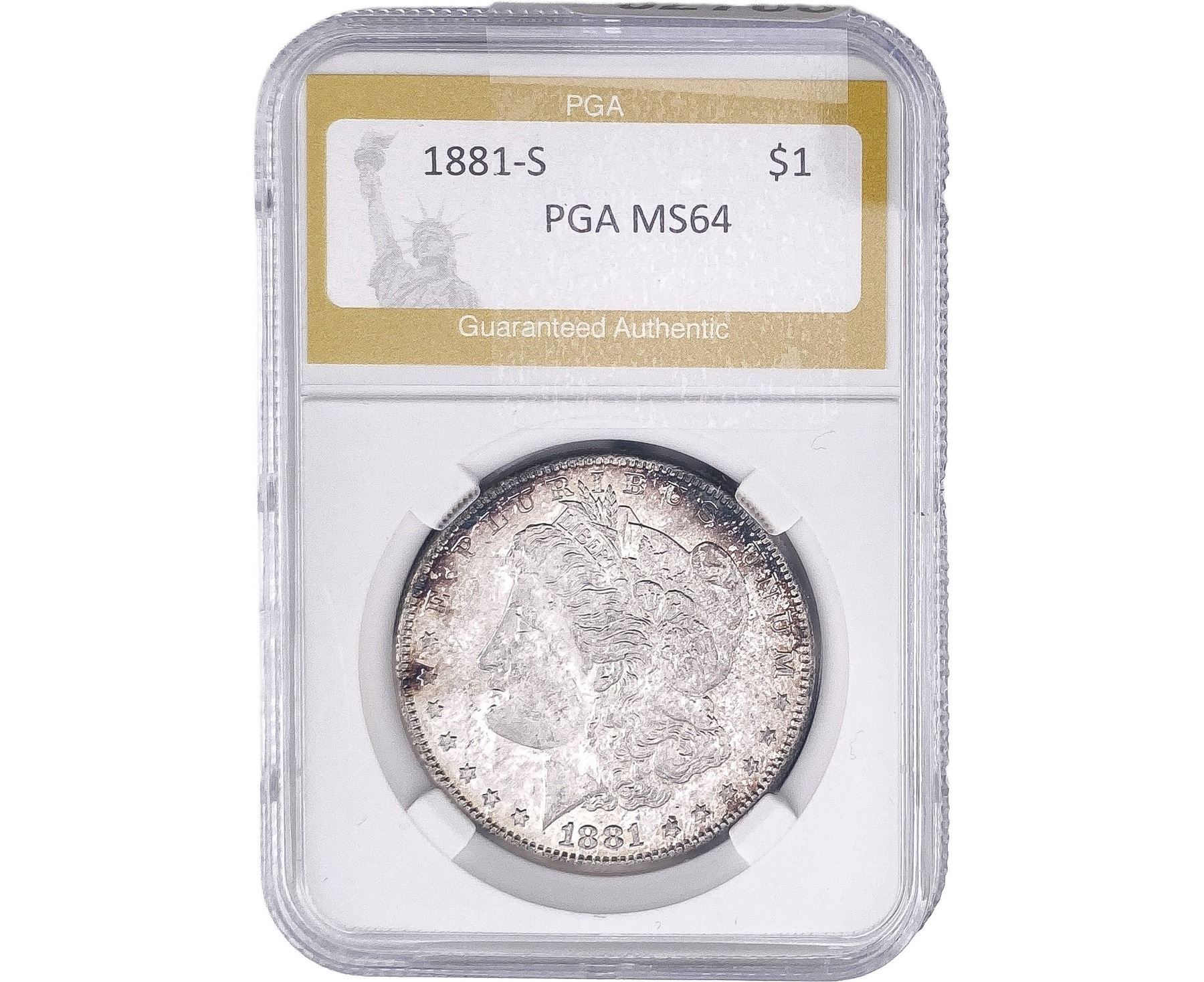 e. Coins sold referencing a third-party grading service are sold “AS IS” without any express or implied warranty, except for a guarantee by GSA that they are genuine. Removal or alteration of the holder, voids all of Bidder’s claims concerning that Product. Certain warranties may be available from the grading services and Bidders are referred to them for further details: Numismatic Guaranty Corporation (NGC), PO Box 4776, Sarasota, FL 34230, www.ngccoin.com/services/writtenguarantee.asp; Professional Coin Grading Services (PCGS), PO Box 9458, Newport Beach, CA 92658, www.pcgs.com/guarantee.html; ANACS, 6555 S. Kenton St., Ste. 303, Englewood, CO 80111; and Independent Coin Grading Co. (ICG), 7901 East Bellview, Ave., Suite 50, Englewood, CO 80111.