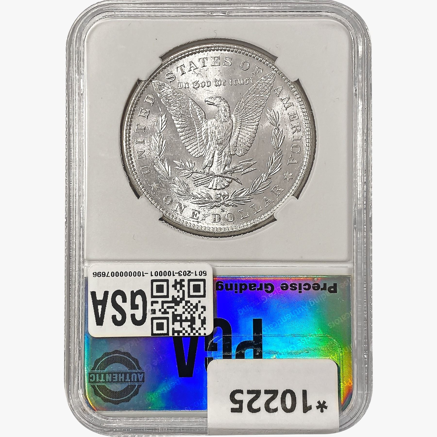 COINS AND CURRENCY LISTED IN GSA’S CATALOG AS GRADED AND ENCAPSULATED BY PCGS, NGC, ANACS, ICG, PCGS CURRENCY, PMG, PCGS BANKNOTE GRADING, CMC OR ANY OTHER THIRD-PARTY GRADING SERVICE ARE LIKEWISE SOLD “AS-IS” EXCEPT AS EXPRESSLY SET FORTH HEREIN. ALL THIRD-PARTY GRADING SERVICE GUARANTEES, INCLUDING AUTHENTICITY, ARE THE SOLE RESPONSIBILITY OF THE THIRD-PARTY GRADING SERVICE AND NOT WARRANTIES OR GUARANTEES OF GSA. BIDDERS SHOULD CONTACT THESE THIRD-PARTY GRADING SERVICES DIRECTLY WITH RESPECT TO ANY CLAIMS OR QUESTIONS THEY MAY HAVE CONCERNING THEIR GUARANTEES AND WARRANTIES. BIDDERS ACKNOWLEDGE AND AGREE THAT AUCTIONEER IS NOT BOUND BY OR LIABLE FOR ANY OPINION OR CERTIFICATION BY ANY THIRD-PARTY GRADING SERVICE. REMOVAL OF A PRODUCT FROM ITS PROTECTIVE CASING OR HOLDER OR ALTERATION OF ANY COIN HOLDER WAIVES ALL RIGHTS CONCERNING THE PRODUCT CONTAINED THEREIN.