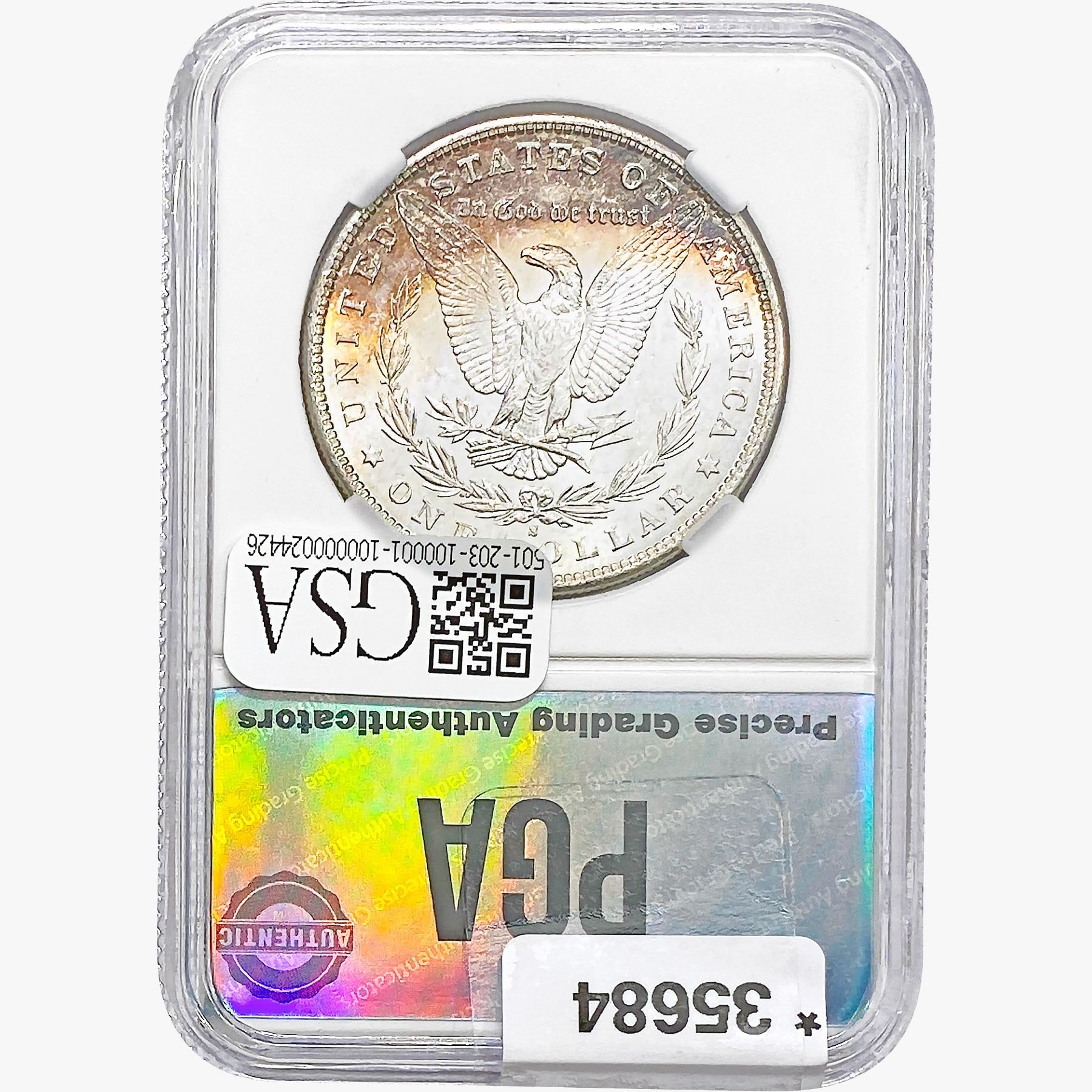 COINS AND CURRENCY LISTED IN GSA’S CATALOG AS GRADED AND ENCAPSULATED BY PCGS, NGC, ANACS, ICG, PCGS CURRENCY, PMG, PCGS BANKNOTE GRADING, CMC OR ANY OTHER THIRD-PARTY GRADING SERVICE ARE LIKEWISE SOLD “AS-IS” EXCEPT AS EXPRESSLY SET FORTH HEREIN. ALL THIRD-PARTY GRADING SERVICE GUARANTEES, INCLUDING AUTHENTICITY, ARE THE SOLE RESPONSIBILITY OF THE THIRD-PARTY GRADING SERVICE AND NOT WARRANTIES OR GUARANTEES OF GSA. BIDDERS SHOULD CONTACT THESE THIRD-PARTY GRADING SERVICES DIRECTLY WITH RESPECT TO ANY CLAIMS OR QUESTIONS THEY MAY HAVE CONCERNING THEIR GUARANTEES AND WARRANTIES. BIDDERS ACKNOWLEDGE AND AGREE THAT AUCTIONEER IS NOT BOUND BY OR LIABLE FOR ANY OPINION OR CERTIFICATION BY ANY THIRD-PARTY GRADING SERVICE. REMOVAL OF A PRODUCT FROM ITS PROTECTIVE CASING OR HOLDER OR ALTERATION OF ANY COIN HOLDER WAIVES ALL RIGHTS CONCERNING THE PRODUCT CONTAINED THEREIN.
