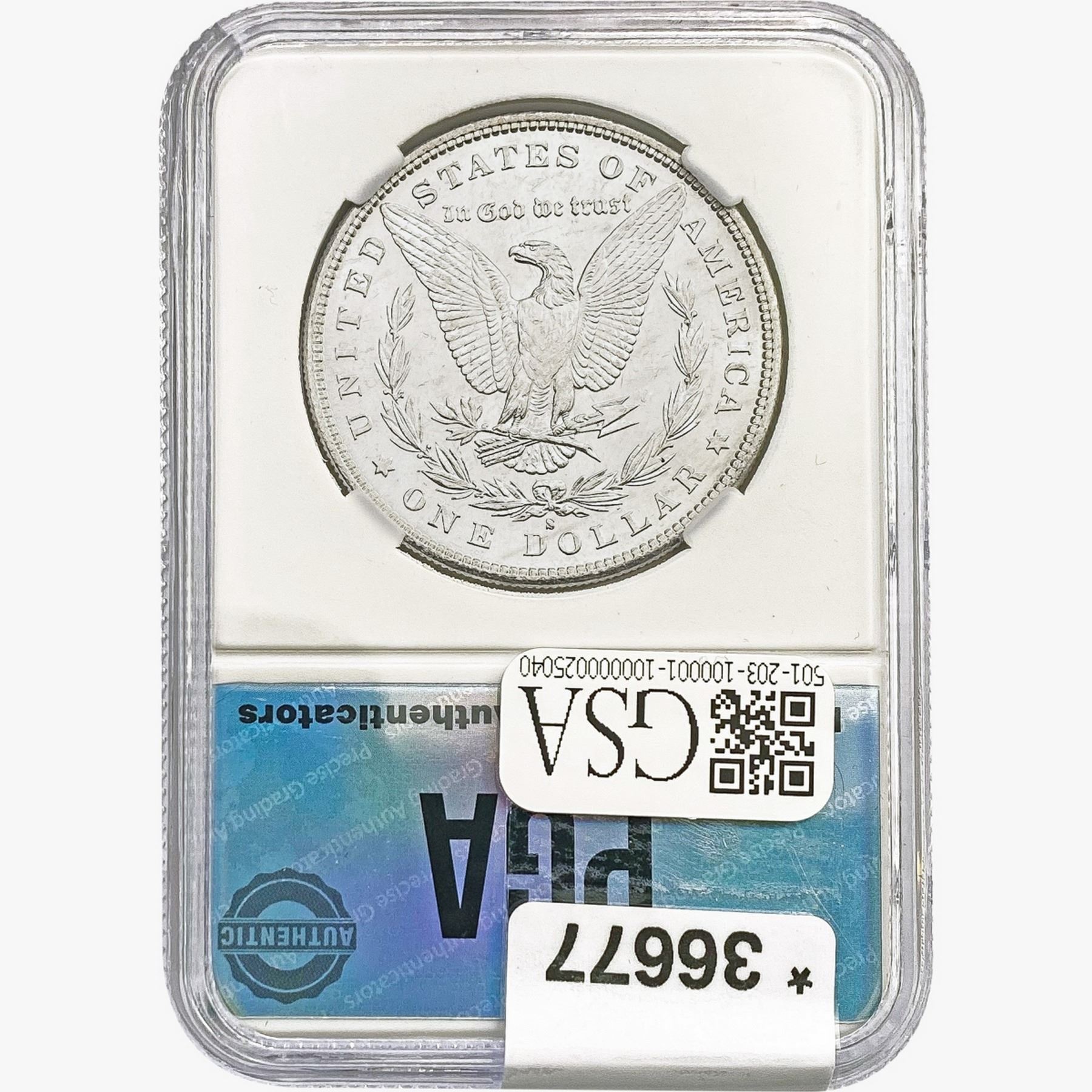 COINS AND CURRENCY LISTED IN GSA’S CATALOG AS GRADED AND ENCAPSULATED BY PCGS, NGC, ANACS, ICG, PCGS CURRENCY, PMG, PCGS BANKNOTE GRADING, CMC OR ANY OTHER THIRD-PARTY GRADING SERVICE ARE LIKEWISE SOLD “AS-IS” EXCEPT AS EXPRESSLY SET FORTH HEREIN. ALL THIRD-PARTY GRADING SERVICE GUARANTEES, INCLUDING AUTHENTICITY, ARE THE SOLE RESPONSIBILITY OF THE THIRD-PARTY GRADING SERVICE AND NOT WARRANTIES OR GUARANTEES OF GSA. BIDDERS SHOULD CONTACT THESE THIRD-PARTY GRADING SERVICES DIRECTLY WITH RESPECT TO ANY CLAIMS OR QUESTIONS THEY MAY HAVE CONCERNING THEIR GUARANTEES AND WARRANTIES. BIDDERS ACKNOWLEDGE AND AGREE THAT AUCTIONEER IS NOT BOUND BY OR LIABLE FOR ANY OPINION OR CERTIFICATION BY ANY THIRD-PARTY GRADING SERVICE. REMOVAL OF A PRODUCT FROM ITS PROTECTIVE CASING OR HOLDER OR ALTERATION OF ANY COIN HOLDER WAIVES ALL RIGHTS CONCERNING THE PRODUCT CONTAINED THEREIN.