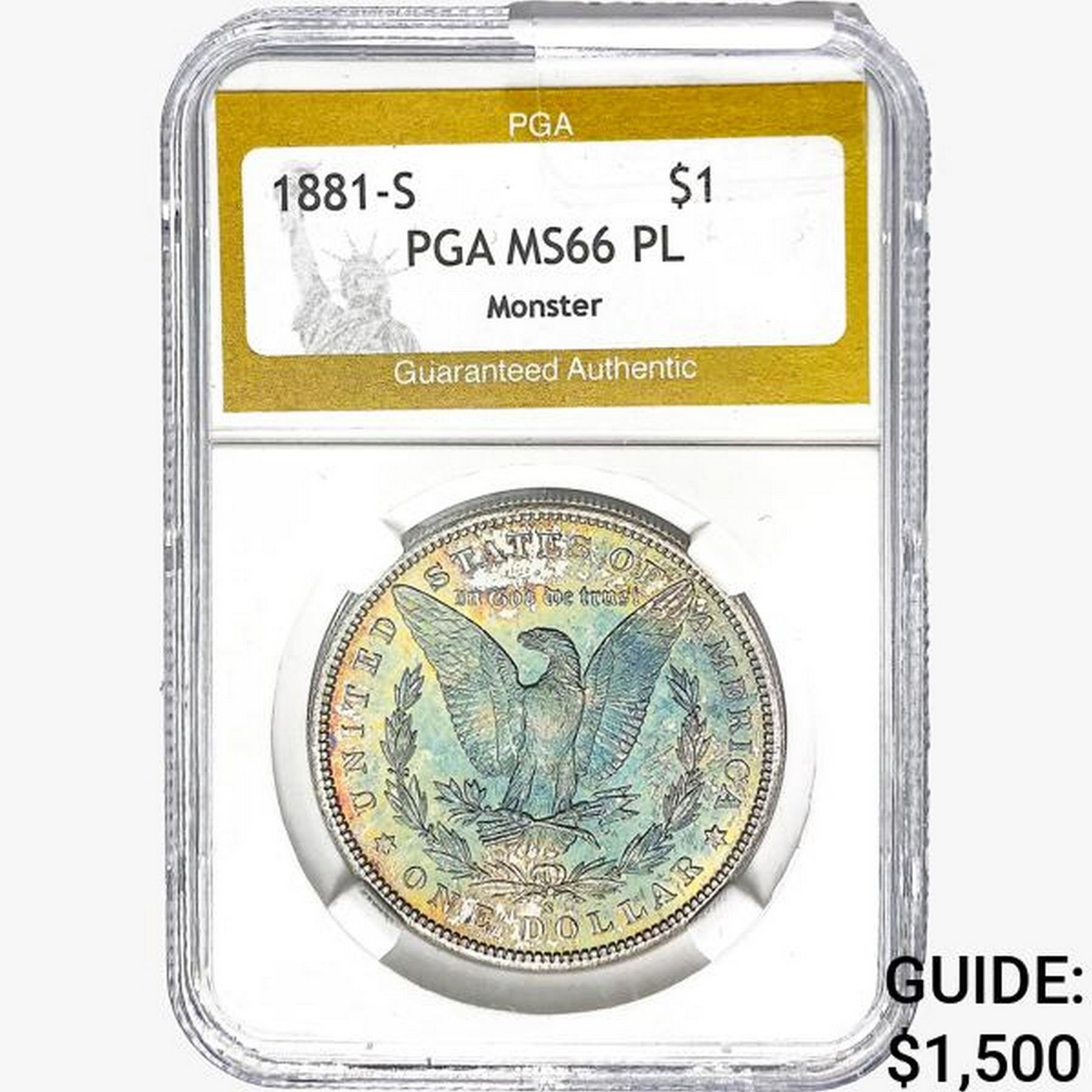 1881-S Morgan Silver Dollar PGA MS66 PL, MONSTER