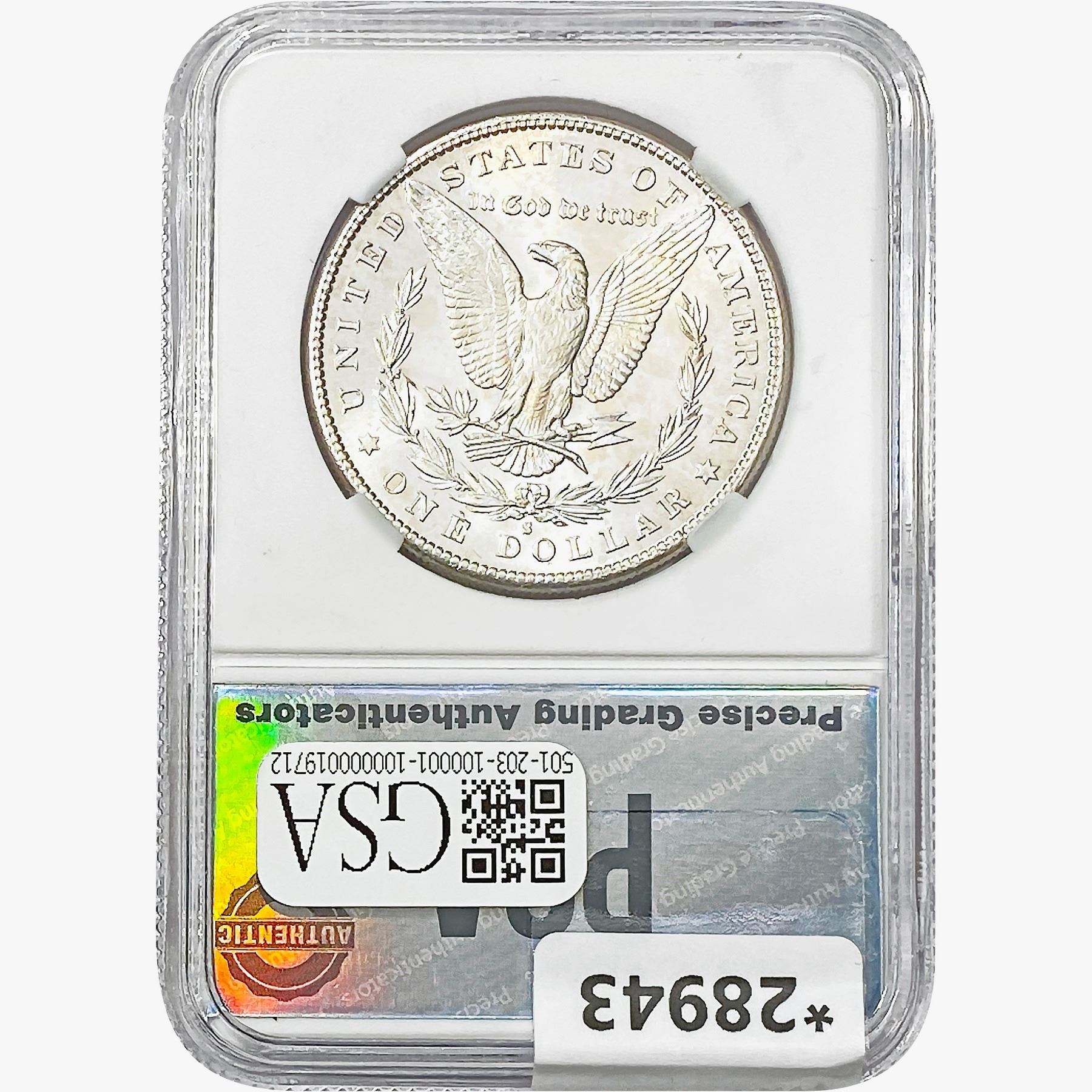 COINS AND CURRENCY LISTED IN GSA’S CATALOG AS GRADED AND ENCAPSULATED BY PCGS, NGC, ANACS, ICG, PCGS CURRENCY, PMG, PCGS BANKNOTE GRADING, CMC OR ANY OTHER THIRD-PARTY GRADING SERVICE ARE LIKEWISE SOLD “AS-IS” EXCEPT AS EXPRESSLY SET FORTH HEREIN. ALL THIRD-PARTY GRADING SERVICE GUARANTEES, INCLUDING AUTHENTICITY, ARE THE SOLE RESPONSIBILITY OF THE THIRD-PARTY GRADING SERVICE AND NOT WARRANTIES OR GUARANTEES OF GSA. BIDDERS SHOULD CONTACT THESE THIRD-PARTY GRADING SERVICES DIRECTLY WITH RESPECT TO ANY CLAIMS OR QUESTIONS THEY MAY HAVE CONCERNING THEIR GUARANTEES AND WARRANTIES. BIDDERS ACKNOWLEDGE AND AGREE THAT AUCTIONEER IS NOT BOUND BY OR LIABLE FOR ANY OPINION OR CERTIFICATION BY ANY THIRD-PARTY GRADING SERVICE. REMOVAL OF A PRODUCT FROM ITS PROTECTIVE CASING OR HOLDER OR ALTERATION OF ANY COIN HOLDER WAIVES ALL RIGHTS CONCERNING THE PRODUCT CONTAINED THEREIN.