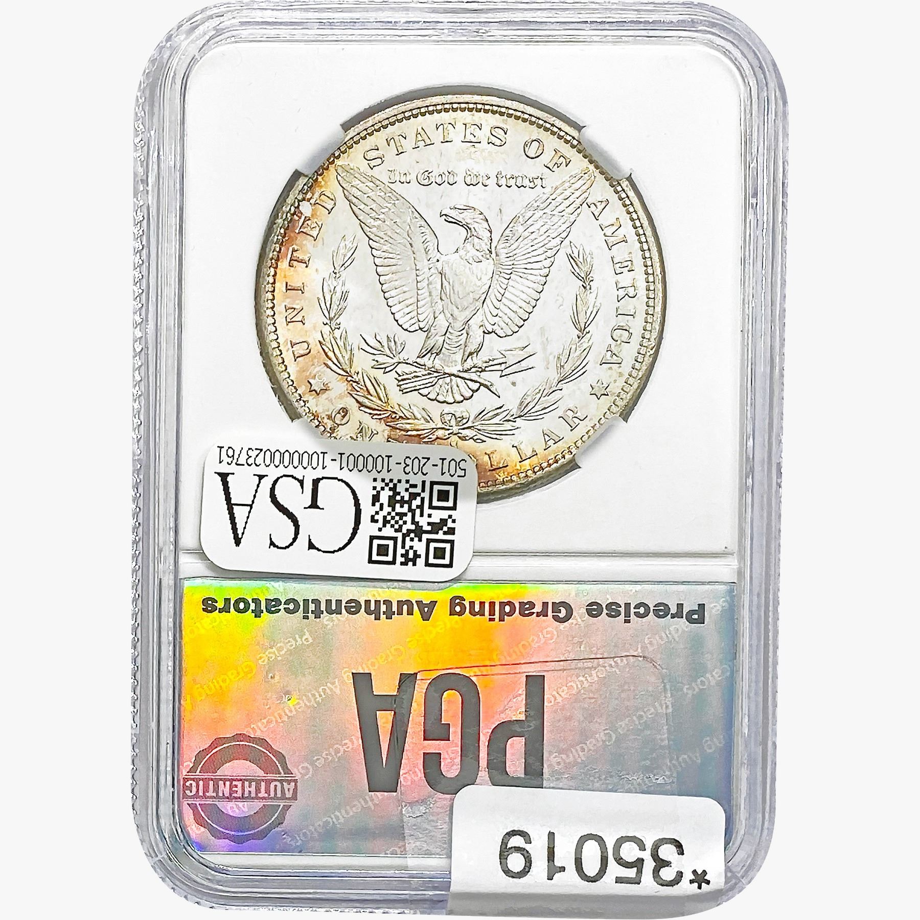 COINS AND CURRENCY LISTED IN GSA’S CATALOG AS GRADED AND ENCAPSULATED BY PCGS, NGC, ANACS, ICG, PCGS CURRENCY, PMG, PCGS BANKNOTE GRADING, CMC OR ANY OTHER THIRD-PARTY GRADING SERVICE ARE LIKEWISE SOLD “AS-IS” EXCEPT AS EXPRESSLY SET FORTH HEREIN. ALL THIRD-PARTY GRADING SERVICE GUARANTEES, INCLUDING AUTHENTICITY, ARE THE SOLE RESPONSIBILITY OF THE THIRD-PARTY GRADING SERVICE AND NOT WARRANTIES OR GUARANTEES OF GSA. BIDDERS SHOULD CONTACT THESE THIRD-PARTY GRADING SERVICES DIRECTLY WITH RESPECT TO ANY CLAIMS OR QUESTIONS THEY MAY HAVE CONCERNING THEIR GUARANTEES AND WARRANTIES. BIDDERS ACKNOWLEDGE AND AGREE THAT AUCTIONEER IS NOT BOUND BY OR LIABLE FOR ANY OPINION OR CERTIFICATION BY ANY THIRD-PARTY GRADING SERVICE. REMOVAL OF A PRODUCT FROM ITS PROTECTIVE CASING OR HOLDER OR ALTERATION OF ANY COIN HOLDER WAIVES ALL RIGHTS CONCERNING THE PRODUCT CONTAINED THEREIN.