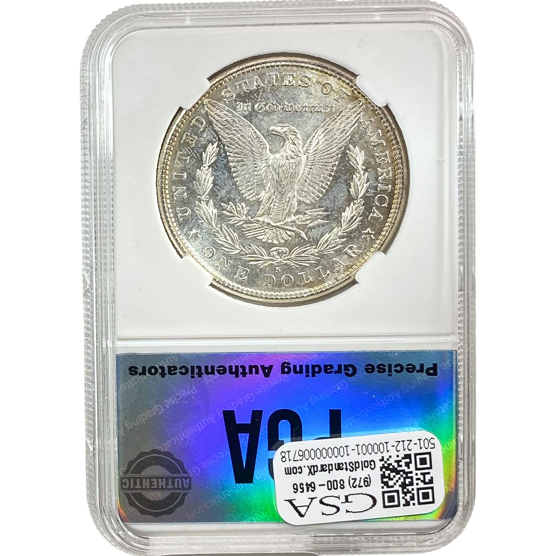 e. Coins sold referencing a third-party grading service are sold “AS IS” without any express or implied warranty, except for a guarantee by GSA that they are genuine. Removal or alteration of the holder, voids all of Bidder’s claims concerning that Product. Certain warranties may be available from the grading services and Bidders are referred to them for further details: Numismatic Guaranty Corporation (NGC), PO Box 4776, Sarasota, FL 34230, www.ngccoin.com/services/writtenguarantee.asp; Professional Coin Grading Services (PCGS), PO Box 9458, Newport Beach, CA 92658, www.pcgs.com/guarantee.html; ANACS, 6555 S. Kenton St., Ste. 303, Englewood, CO 80111; and Independent Coin Grading Co. (ICG), 7901 East Bellview, Ave., Suite 50, Englewood, CO 80111.