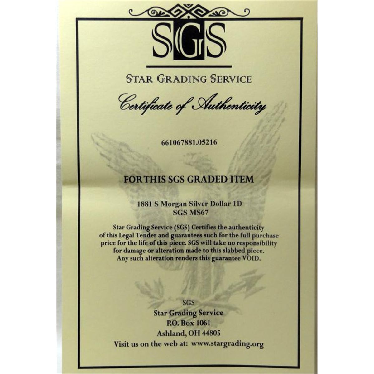 1881-S Morgan Silver Dollar SGS MS-67 w/ C.O.A