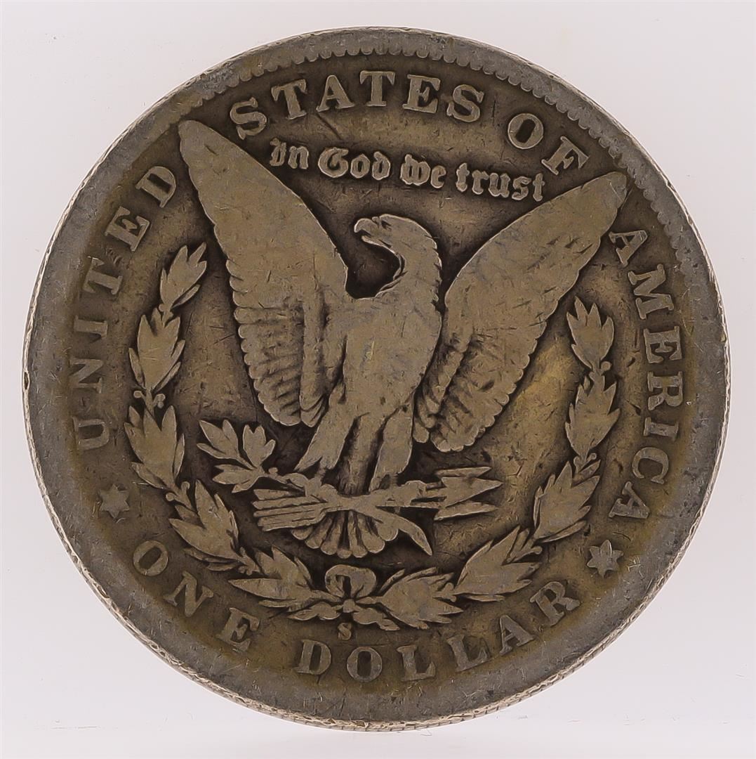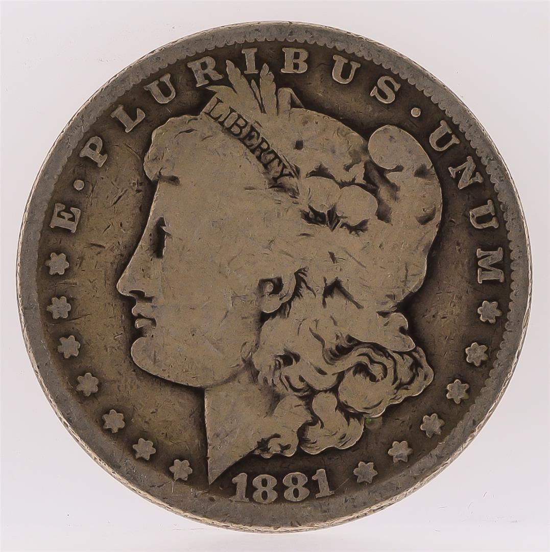 One 1881-S Morgan Silver Dollar.