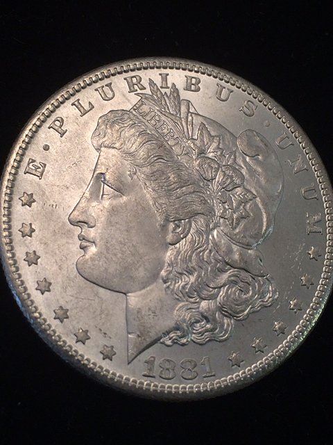1881-S Morgan Silver Dollar, brilliant and uncirculated.