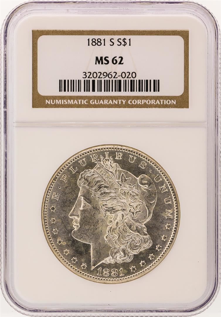 One 1881-S NGC MS62 Morgan Silver Dollar. NGC Certified.