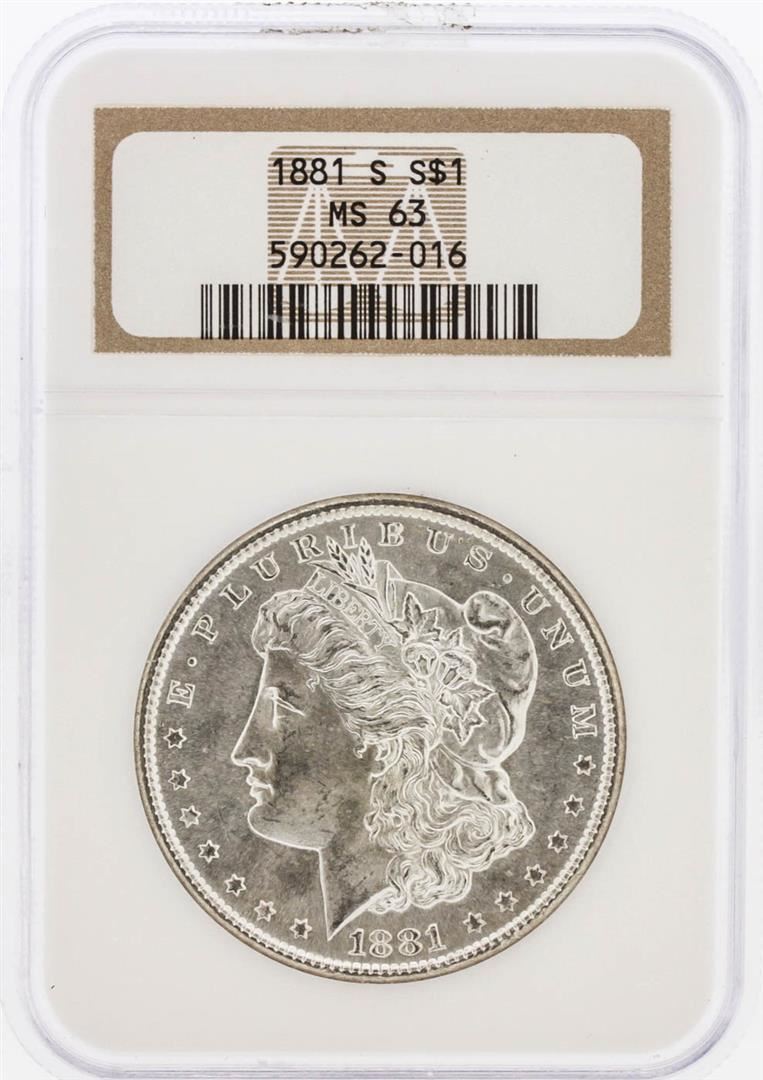 One 1881-S NGC MS63 Morgan Silver Dollar. NGC Certified.