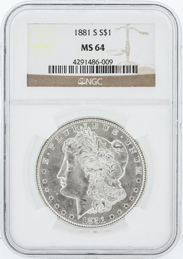 One 1881-S NGC MS64 Morgan Silver Dollar. NGC Certified.
