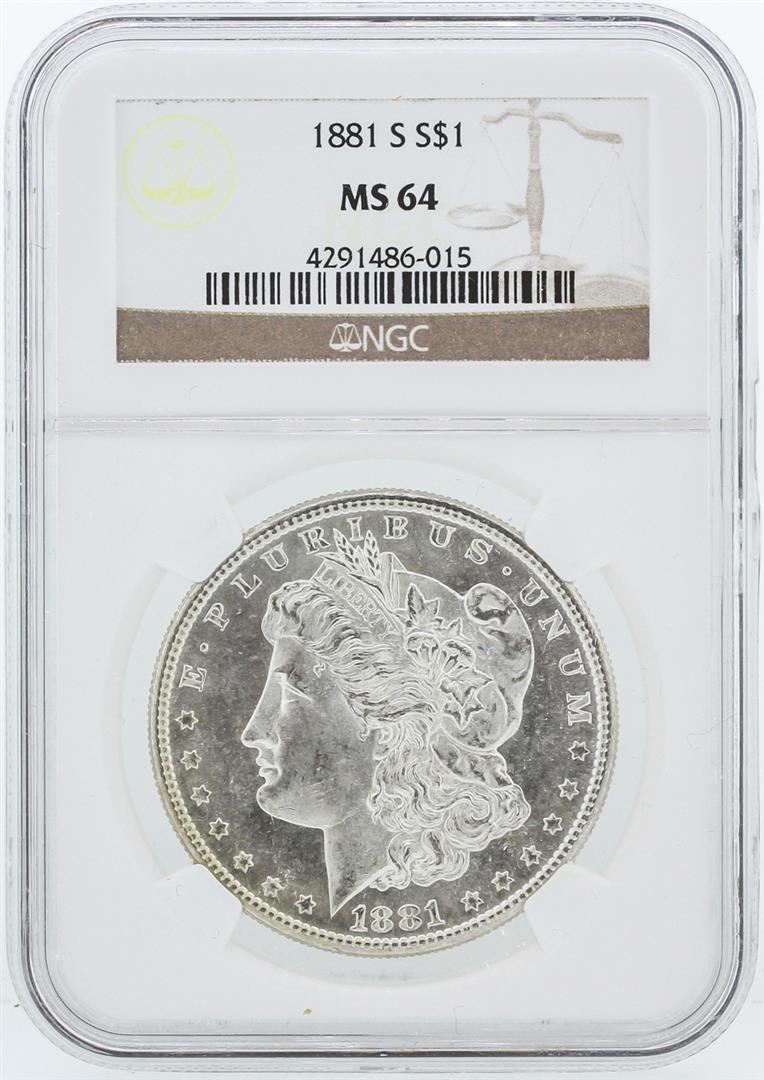 One 1881-S NGC MS64 Morgan Silver Dollar. NGC Certified.