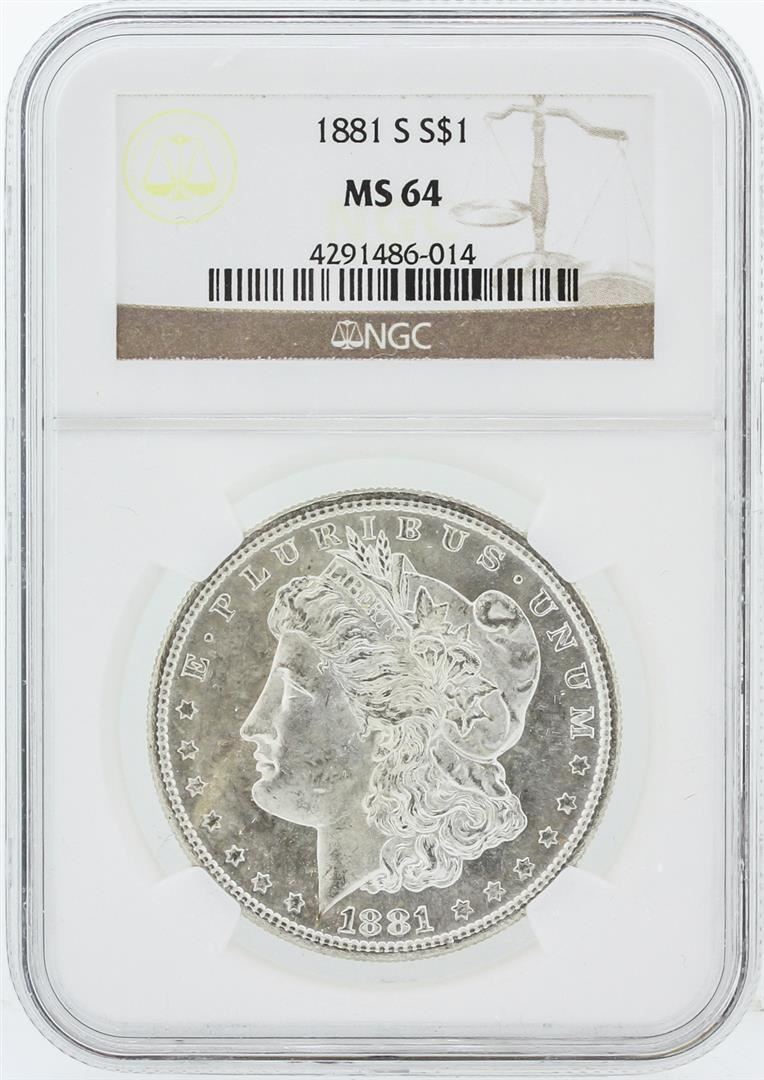 One 1881-S NGC MS64 Morgan Silver Dollar. NGC Certified.