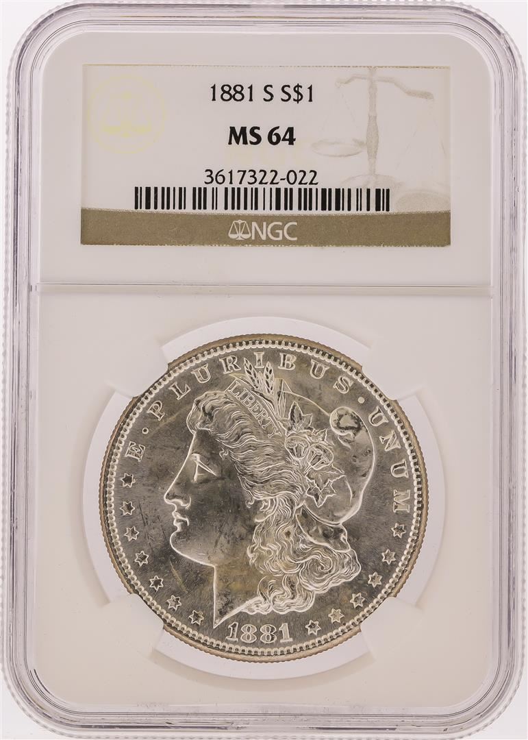 One 1881-S NGC MS64 Morgan Silver Dollar. NGC Certified.