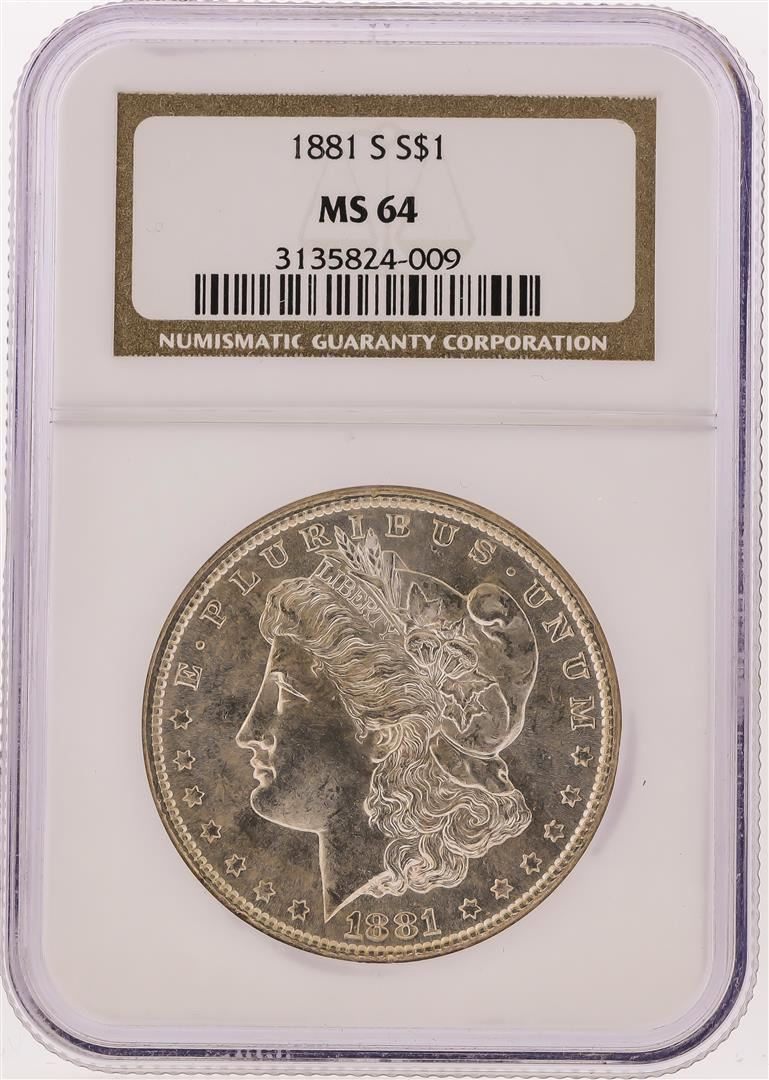 One 1881-S NGC MS64 Morgan Silver Dollar. NGC Certified.