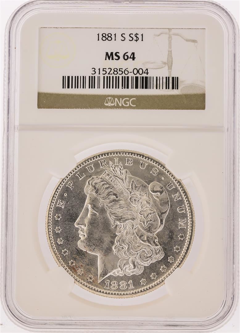 One 1881-S NGC MS64 Morgan Silver Dollar. NGC Certified.