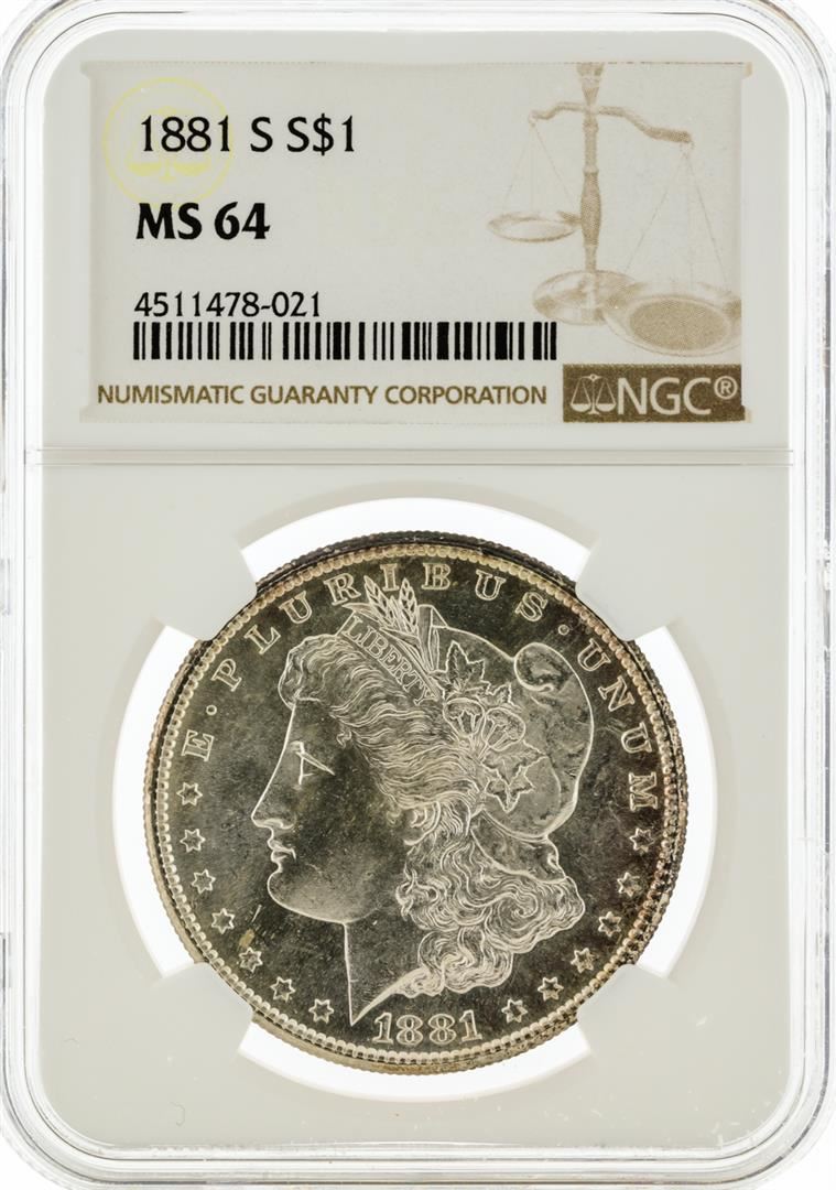 One 1881-S NGC MS64 Morgan Silver Dollar. NGC Certified.