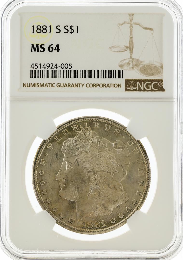 One 1881-S NGC MS64 Morgan Silver Dollar. NGC Certified.