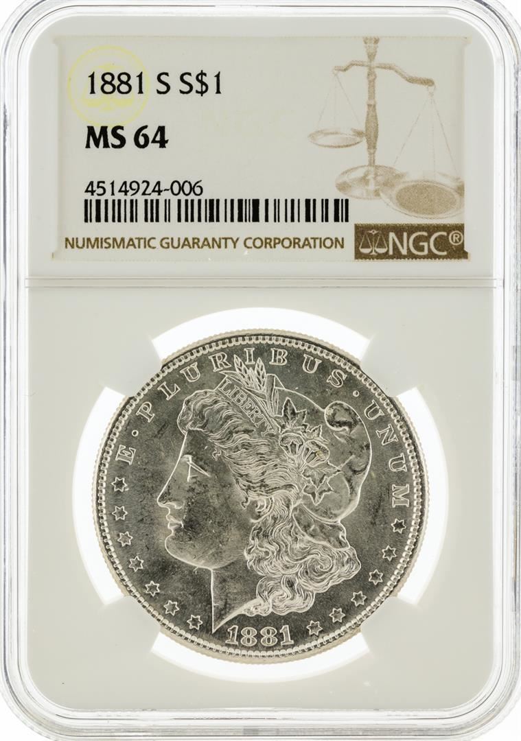 One 1881-S NGC MS64 Morgan Silver Dollar. NGC Certified.