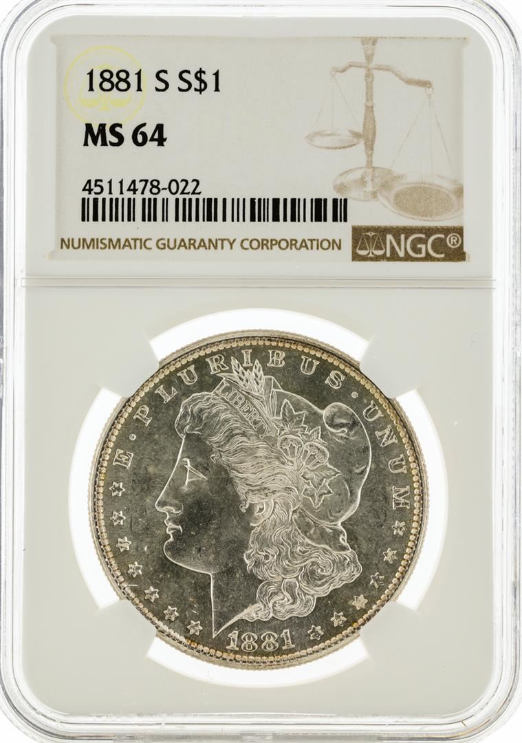 One 1881-S NGC MS64 Morgan Silver Dollar. NGC Certified.