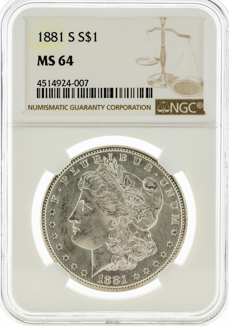One 1881-S NGC MS64 Morgan Silver Dollar. NGC Certified.