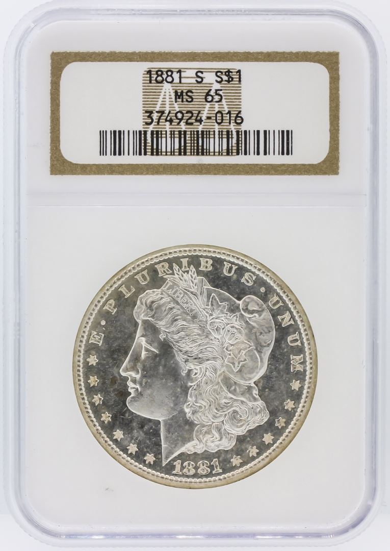 One 1881-S NGC MS65 Morgan Silver Dollar. NGC Certified.