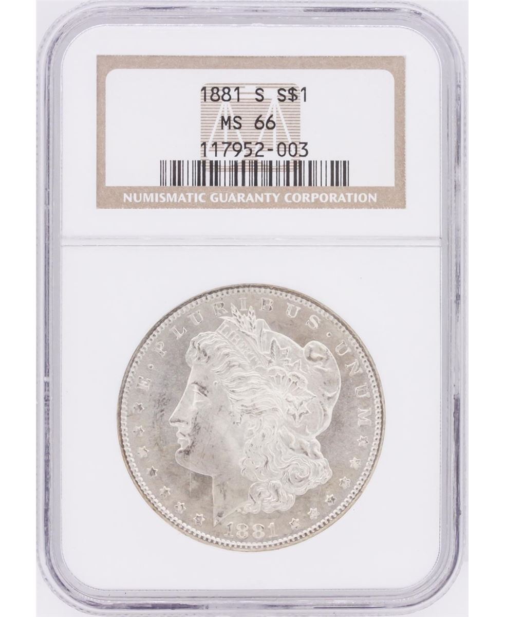 One 1881-S NGC MS66 Morgan Silver Dollar.