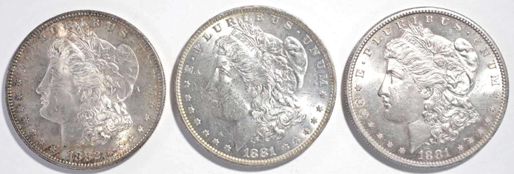 1881-S, O, 1882-S MORGAN DOLLARS CH BU