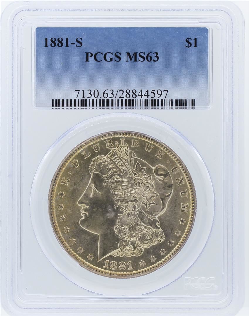One 1881-S PCGS MS63 Morgan Silver Dollar. PCGS Certified.