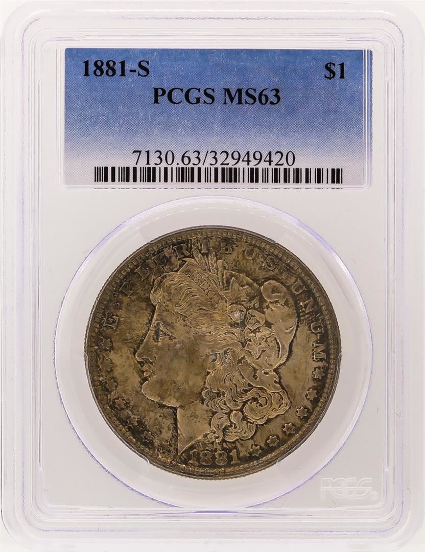 One 1881-S PCGS MS63 Morgan Silver Dollar. PCGS Certified.
