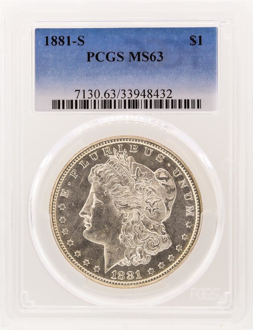 One 1881-S PCGS MS63 Morgan Silver Dollar. PCGS Certified.