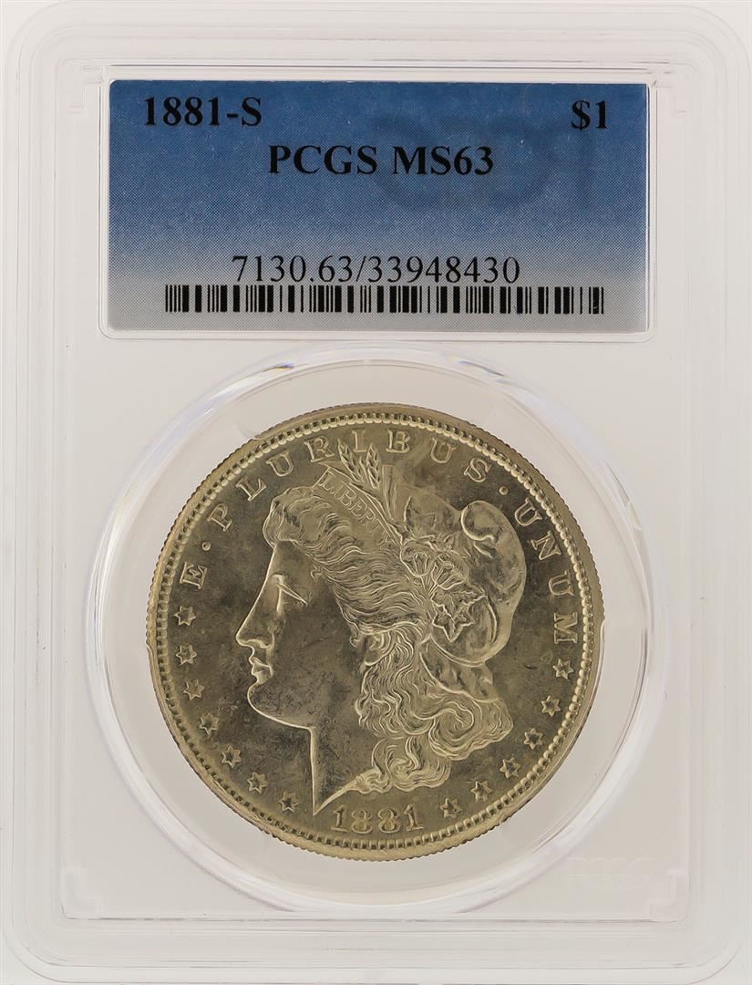One 1881-S PCGS MS63 Morgan Silver Dollar. PCGS Certified.