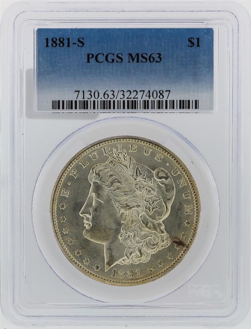 One 1881-S PCGS MS63 Morgan Silver Dollar. PCGS Certified.
