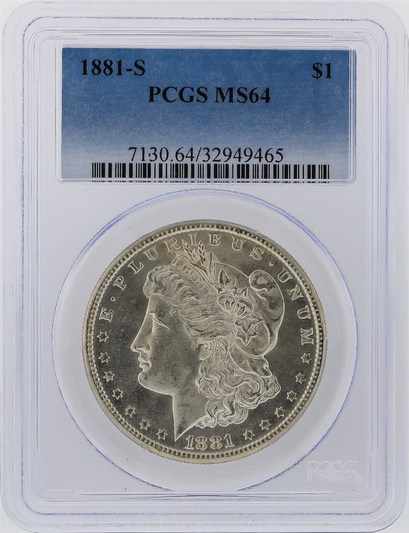 One 1881-S PCGS MS64 Morgan Silver Dollar. PCGS Certified.