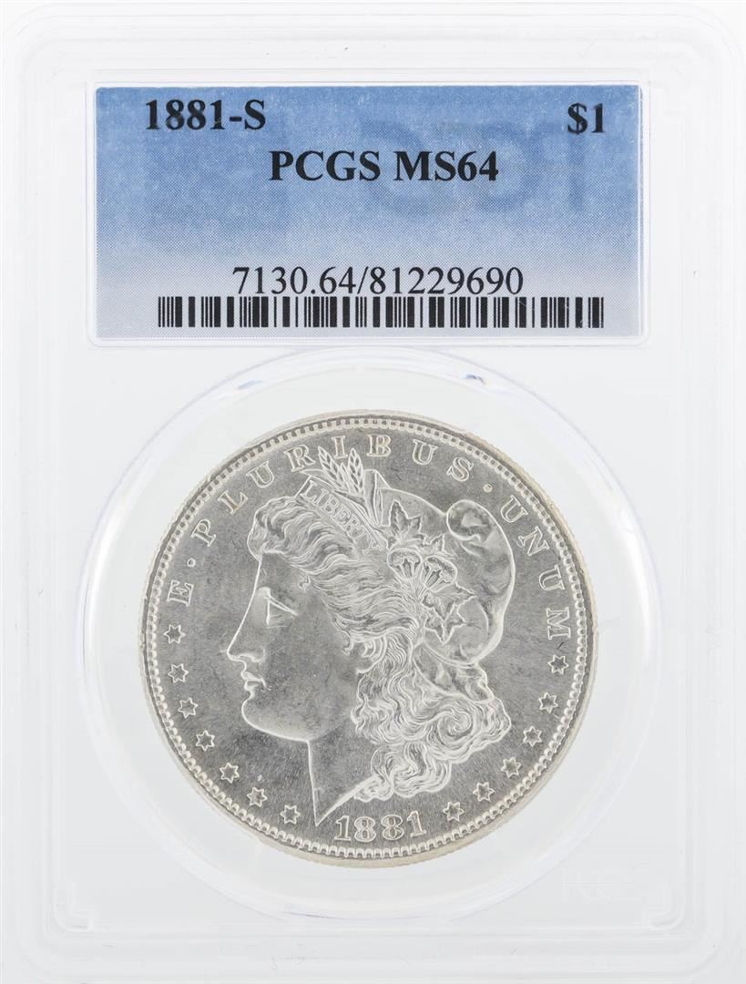 One 1881-S PCGS MS64 Morgan Silver Dollar.