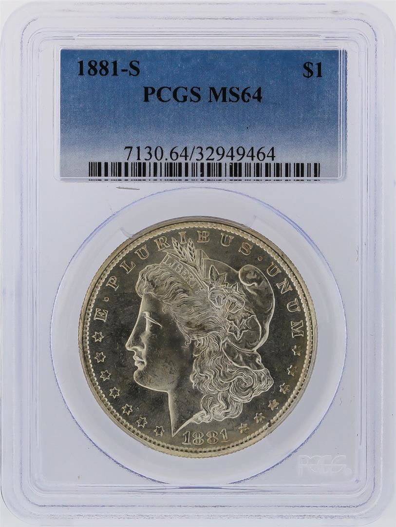One 1881-S PCGS MS64 Morgan Silver Dollar. PCGS Certified.