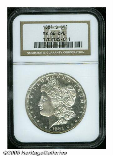 <B>1881-S<S$1> MS66 Deep Mirror Prooflike NGC.</B></I> A highly reflective example that is untoned and shows a moderate degree of field-to-device contrast.