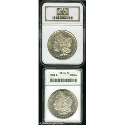 1881-S S$1 MS66 NGC, brilliant aside from an occas <B>1881-S S$1 MS66 NGC,</B></I> brilliant aside from an occasional wisp of gold color, vibrant and well preserved; and an <B>1883 MS65 Prooflike ANACS,</B></I> apricot color along the borders, good mirrors, boldly struck. <BR><BR><B>Important notice:</B> Heritage usually auctions material at the rate of 200-250 lots per hour. On some occasions eBay Live bid software or the Internet may not be able to keep up with the pace of the auction. We recommend placing a realistic absentee bid now as insurance to avoid disappointment. Occasionally the auctioneer may eliminate or reject an eBay Live bid, and the auctioneer may also reopen a lot after the close of the eBay live bidding (usually because we missed an audience bid), and may reject your bid even if it shows you as the winning bidder. By bidding via eBay Live, you agree that Heritage may award the lot to another bidder at its sole discretion under the circumstances described above or any other reasonable circumstances. Since eBay bids are not shown to us until we open the lot on the floor, we treat those bids just like floor bids. In most cases the floor responds before the eBay bid is presented to us, due to Internet lag time, so for consistency we have made it a policy that floor bids are always considered first over tie eBay live bids. Also please note that all Heritage lots purchased through eBay Live carry a 20% Buyer's Premium. Please make sure you read the Terms and Conditions before you bid. This lot is being auctioned in conjunction with a live floor auction by Heritage Galleries & Auctioneers. All final auction and invoice information will be supplied by Heritage Galleries & Auctioneers, and all other information should be considered preliminary. Lot:7397