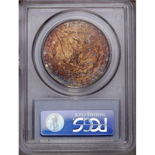 <B>1881-S<img border='0' src='http://www.heritagecoins.com/images/star.gif' width=10 height=10>$1> MS66 PCGS.</B></I> Sharply struck with vibrant luster and extensive speckled red-orange patina on the obverse that fails to obscure rolling cartwheel effects in the fields. The reverse displays more dramatic red-gold, purple-red, and electric-blue toning over similarly dazzling cartwheel splendor. Minimally abraded on both sides.