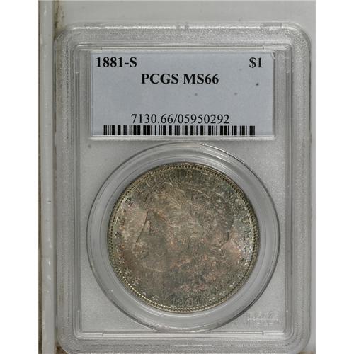 1881-S S$1 MS66 PCGS. Variegated cobalt-blue, lavender