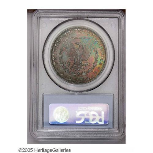 <B>1881-S<S$1> MS66 PCGS.</B></I> Vividly toned in plum, forest-green, and orange colors, this pinpoint sharp type coin is nonetheless highly lustrous and attractively preserved.