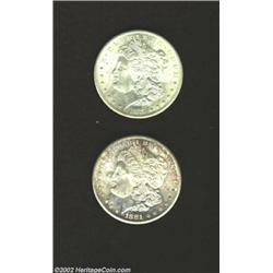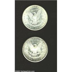 1881-S S$1 MS66 Uncertified, the date shows recutting within the loops of the 8s, lovely light golden-brown patina, well preserved; and an 1889-S MS63 Uncertified, well struck and lustrous with a few luster grazes on the obverse and a pleasing reverse. 2 coins Important notice: We expect to be auctioning lots at the rate of 200-250 per hour. Sometimes eBay Premier live bid software cannot keep up with that pace, so we strongly recommend that you place a realistic proxy bid now as insurance to avoid disappointment. Also please note that all Heritage/CAA lots purchased through eBay Premier carry a 20% Buyer's Premium. Please make sure you read the Terms and Conditions.