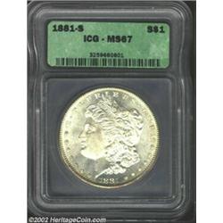 1881-S S$1 MS67 ICG. There are amazingly few imperfections to be found upon these essentially pristi