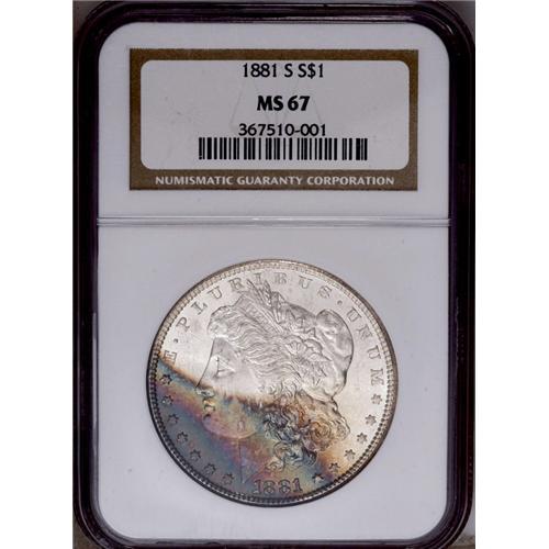 1881-S S$1 MS67 NGC. Bands of deep gold, amber, lilac, 1881-S[img border='0' src='http://www.heritag